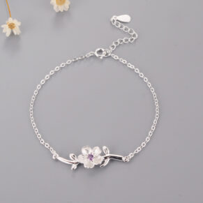 রুপার পার্পল স্টোন পুকি ব্রেসলেট SB09